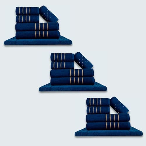 Jogo De Toalhas 18 P?s Cole??o Montreal 100% Algod?o Azul