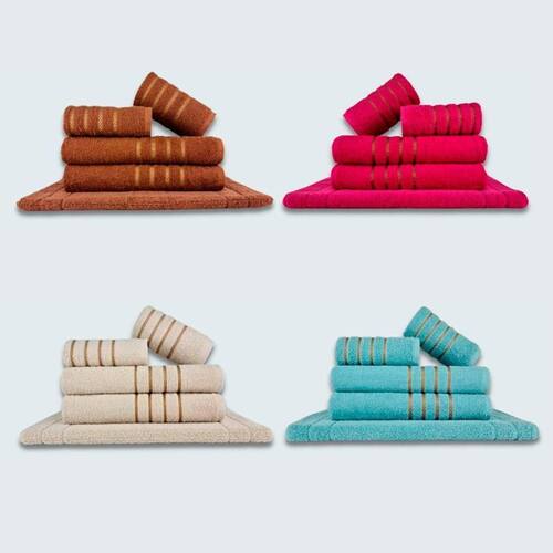 O tingimento é reativo deixando a Toalha Montreal com cores modernas e vivas, por ser reativo não tem o risco de soltar tinta. Essa toalha contém a barra decorada em dourado para dar um toque de modernidade e luxo ao seu Ambiente.