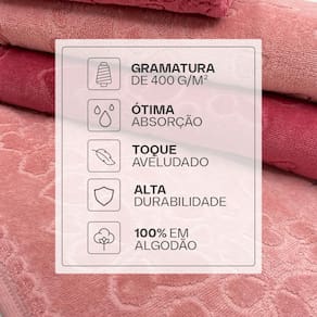 Desfrute de uma experiência única de relaxamento após o banho com as Toalhas Romance da Döhler. Produzidas em 100% algodão de toque aveludado, elas oferecem alta absorção e maciez para uma secagem rápida e aconchegante. 100% algodão de fios penteados Gramatura de 400 g/m² Ótima absorção Toque aveludado macio