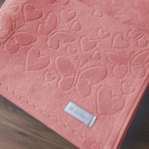 Design único e encantador O tecido em Jacquard aveludado possui um design de corações e borboletas em alto relevo que adiciona um visual elegante e delicado às peças, conferindo um charme especial ao seu banheiro.