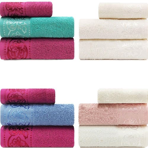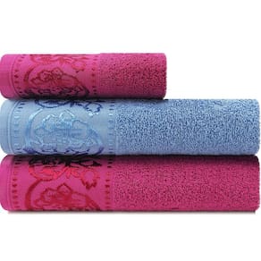 Este jogo contém 3 peças: - 01 Toalha Rosto (50cm x 70m) - 02 Toalhas Banho (70cm x 1,30m)