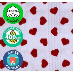 Jogo de toalhas com toque macio e excelente absorção. Com estampa de corações, deixando o seu ambiente romântico e delicado. Mais conforto e qualidade para o seu dia!