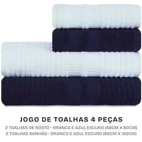 Este kit contém: 02 Toalhas Banhão (86cm x 150cm) 02 Toalhas de Rosto (48cm x 80cm)