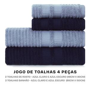 Jogo de Toalhas 4 Peças Banhão e Rosto 100% Algodão - Brisa - Karsten - Azul Marinho