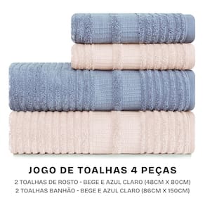 Este kit contém: 02 Toalhas Banhão (86cm x 150cm) 02 Toalhas de Rosto (48cm x 80cm)