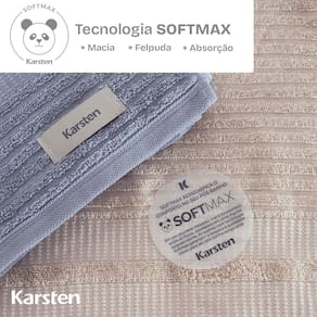 Características: Tecido: 100% algodão; Gramatura: 430g/m² (alto padrão); Acabamento: Tecnologia SoftMax com ar inserido entre as fibras para maior maciez, volume e absorção sem ressecar as fibras; Alta absorção desde o 1º uso - nada de “toalha nova não enxuga”! Textura felpuda e volumosa para massagear a pele suavemente; Textura Jacquard; Pré-lavada; Pré-encolhida, evitando encolhimento após a lavagem; Tamanhos: Banhão (86cm x 150cm) e Rosto (48cm x 80cm); Modelo: Brisa; Marca: Karsten.