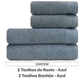 Este kit contêm 4 peças: 02 Toalhas de Rosto (48cm x 80cm) 02 Toalhas de Banhão (86cm x 150cm)