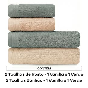 Este kit contêm 4 peças: 02 Toalhas de Rosto (48cm x 80cm) 02 Toalhas de Banhão (86cm x 150cm)