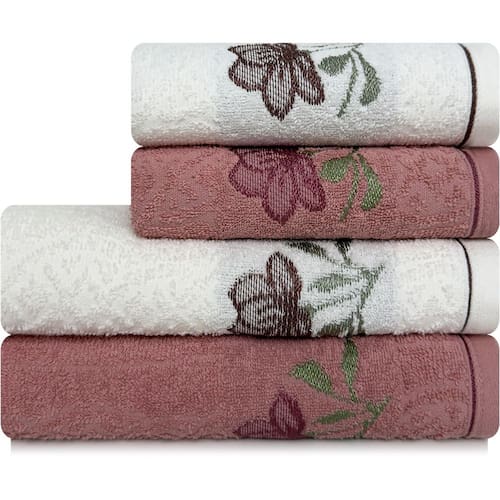 Jogo de Toalhas 4 Peças Banho e Rosto 100% Algodão Karsten Encanto - Rosê
