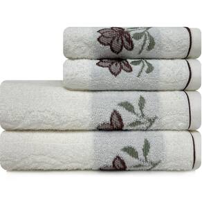 Jogo de Toalhas 4 Peças Banho e Rosto 100% Algodão Karsten Encanto - Branco