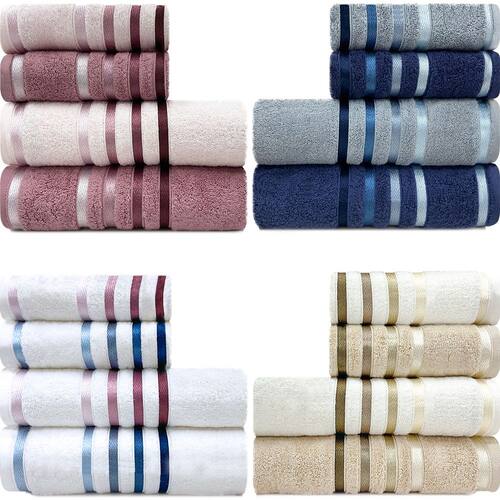 Jogo de toalhas com toque macio e excelente absorção.