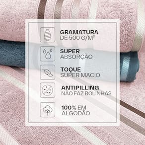 Este kit contém: 02 Toalhas Rosto (48cm x 80cm) 02 Toalhas Banho (70cm x 140cm)
