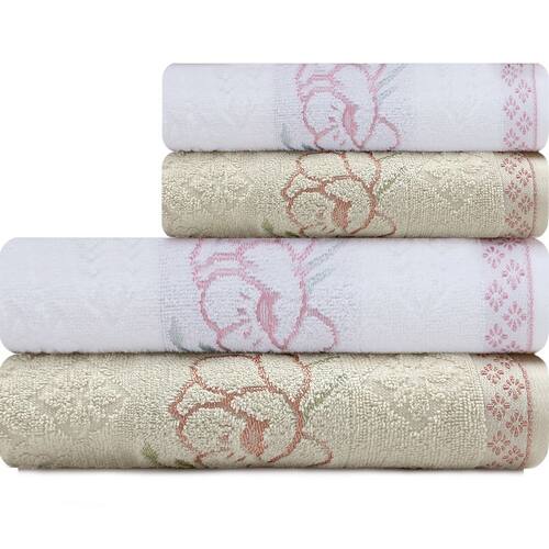 Este Kit Contém: - 02 Toalhas Rosto (50cm x 80cm) - 02 Toalhas Banho (70cm x 135cm)