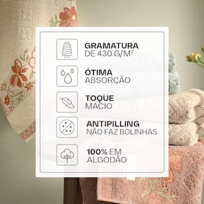 Toalhas com toque macio e com ótima absorção garantindo mais conforto e qualidade para o seu dia! As Toalhas Yuna da Karsten é confeccionao com 430g/m em fio cardado que é a escolha perfeita para se sentir completo na hora do seu banho. Além disso, ela passam pelo processo de pré-encolhimento e possuem o antipilling que é um tratamento para retirar fibras soltas no tecido e evitar a formação de pillings (bolinhas), com esses acabamentos as toalhas têm maior resistência às lavagens e ao uso diário. Com cores neutras, deixando o seu ambiente mais elegante e sofisticado.