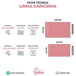 A linha Caricinha é uma linha simples e enxuta, arejada, leve e respirável, a toalha é ideal para quem busca um item bonito, com qualidade e ótimo custo.