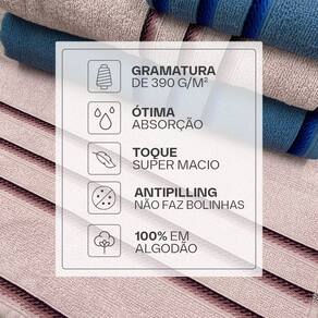 Feita 100% de algodão (exceto a barra decorativa), com gramatura de 390g/m², oferece uma experiência única de relaxamento. O design minimalista e moderno traz sofisticação à decoração do seu banheiro. A escolha ideal para quem quer toalhas de qualidade!