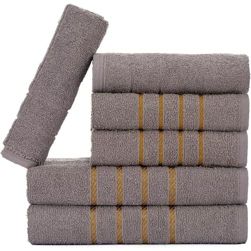 Jogo De Toalhas 6 Pçs - 2 Banho 2 Rosto 2 Piso Montreal 100% Algodão Cinza Jogo de Toalhas 2 Banho 2 Rosto 2 Piso - 6 pçs Montreal 100% Algodão Qualidade das Toalhas Montreal: As Toalhas Montreal são confeccionadas com 100% algodão, tendo alta absorção de água desde a primeira vez de uso. São indicadas para uso no Dia a Dia, Pousada, Estética, Praia, Spas, Hoteis e Moteis. Feito com fio 16/1 singelo um dos melhores fios para produção de toalhas tornando-as mais macias e com alta durabilidade nas lavagens industriais.O tingimento é reativo deixando a Toalha Montreal com cores modernas e vivas, por ser reativo não tem o risco de soltar tinta. Essa toalha contém a barra decorada em dourado para dar um toque de modernidade e luxo ao seu Ambiente.A Toalha Montreal é desenvolvida com os melhores fios para dar maciez a seu corpo, tingidas em cores fortes e alegres para deixar seu ambiente mais aconchegante e agradável. Pode comprar a sua toalha tranquilamente, temos a certeza que você vai gostar, será um grande prazer lhe atender!Ideal para pessoas que buscam qualidade e resistência, com toalha macia e com ótima absorção. Compre este Kit Montreal de presente e surpreenda quem você ama! Resumo Técnico do Kit Montreal 6 Peças: Composição - 2 Toalhas de Banho + 2 Toalhas de Rosto + 2 Tapete PisoGramatura - 330 G/mPeso Toalha de Banho - 290 a 300 GramasPeso Toalha de Rosto - 110 a 120 GramasTamanho Toalha de Banho - 70x130 cmTamanho Toalha de Rosto - 45x70 cmFio - 16/1Marca: Toalhas Beka Garanta já o seu Jogo de Toalhas 2 Banho 2 Rosto 2 Piso - 6 pçs Montreal 100% Algodão e tenha a melhor experiência de conforto e qualidade em seu banheiro! Marca: Toalhas Beka