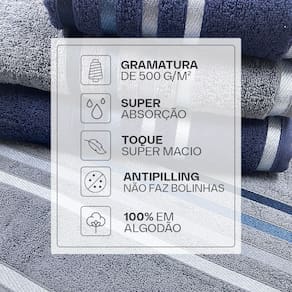 Toalhas de banho e rosto com fio penteado e tratamento antipilling, que não junta bolinhas no tecido.
