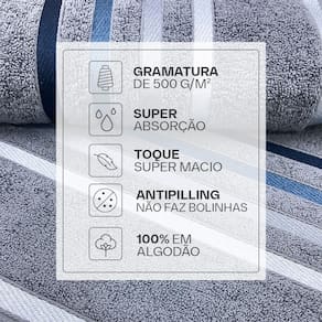 Toalhas de banho e rosto com fio penteado e tratamento antipilling, que não junta bolinhas no tecido da toalha.