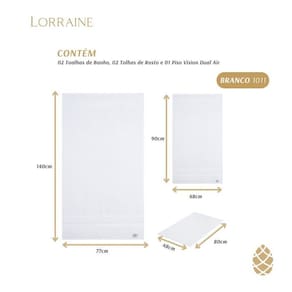 Conteúdo da embalagem: Contém: 2 toalhas de banho 77x140cm + 2 toalhas de rosto 48x90cm + 1 toalha de piso 48x80cm.