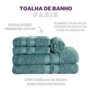 Com o Jogo de Toalha de Banho e Rosto 5 Pçs Gigante Paris Petróleo, você terá a combinação perfeita de qualidade, conforto e sofisticação. Adquira já o seu e transforme seu banheiro em um verdadeiro spa de luxo.
