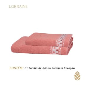 Jogo de toalhas dhler jacquard premium corações banho 2 pçs Cor: rosa médio Jogo de banho 2 peças jacquard premium fj-6987 estampada corações