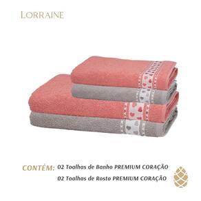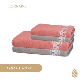 Jogo de toalhas dhler jacquard premium corações banho 4 pçs Cor: cinza/rosa Jogo de banho 4 peças jacquard premium fj-6987 estampada corações