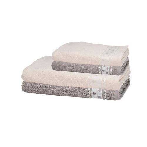 Jogo de toalhas dhler jacquard premium corações banho 4 pçs Cor: cinza/creme Jogo de banho 4 peças jacquard premium fj-6987 estampada corações
