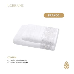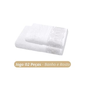 Jogo de Toalhas Gigante Roma 2 Pçs Algodão Egípcio Buettner Cor: Branco 1011 Descrição: Jogo de Banho 2 Peças Cristal com Renda Buettner Algodão Egípcio Roma