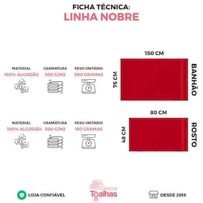 Toalha de Rosto: Medidas: 48cm x 80cm Peso: 160 Gramas Gramatura: 450 g/m2