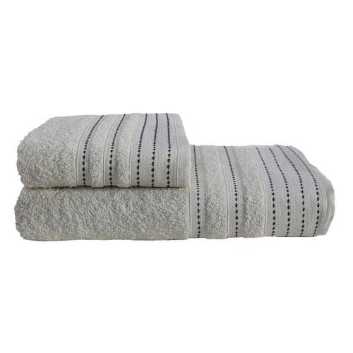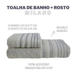 Este jogo de toalhas é composto por uma toalha de banho, com medidas aproximadas de 1,50m x 77cm, e uma toalha de rosto, com medidas de 70cm x 45cm. Ambas possuem uma gramatura de 290 g/m2, proporcionando uma excelente absorção e durabilidade.