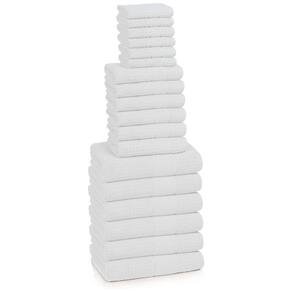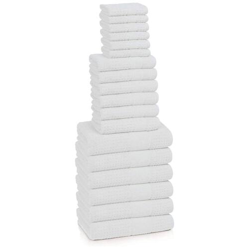 Este elegante conjunto de toalhas é composto por 6 toalhas de rosto medindo 33 x 33 cm, 6 toalhas de mão de 76 x 46 cm e 6 toalhas de banho de 137 x 76 cm. Cada toalha apresenta uma encantadora textura em waffle, confeccionadas em 100% algodão turco penteado e de fibra longa, garantindo uma qualidade superior.