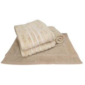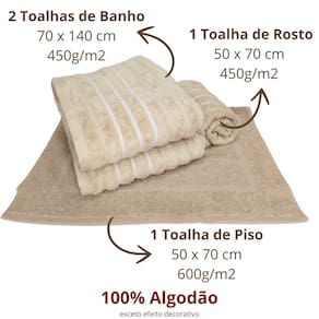 O que vem na embalagem: 2 Toalhas de Banho Wave 70x140cm 450g/m2 1 Toalha de Rosto Wave 50x70cm 450g/m2 1 Toalha de Piso Mykonos 50x70cm 600g/m2