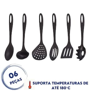Conjunto Completo: Inclui os utensílios essenciais para o preparo e serviço de alimentos, como concha, espátula, escumadeira, colher de servir, colher de arroz e pegador de massa. Resistência ao Calor: Pode ser em altas temperaturas sem deformar, ideal para cozinhar diretamente em panelas e frigideiras quentes.