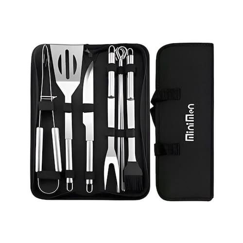 Além de funcionais, os utensílios vêm acomodados em um estojo com alça resistente e elegante, facilitando o e o armazenamento, seja em casa, no sítio ou em um churrasco com amigos.