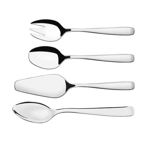 Jogo De Utensílios Tramontina Pacific Em Aço Inox Acabamento Alto Brilho 4 Peças As peças são acondicionadas em uma bela embalagem. Totalmente feitas de aço inox, altamente duráveis, mantêm suas características , preservando a beleza, a higiene e a durabilidade do material. Acabamento em alto brilho. Podem ser lavadas diariamente na máquina de lavar louças. Cor: Única
