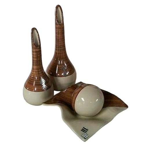 Jogo de vasos par lâmpadas e centro de mesa em cerâmica - bege Jogo de vasos par de lâmpadas e centro de mesa 1 de sala e aparador decor Jogo de vasos par de lâmpadas e centro de mesa 1 premium em cerâmica ecológica decorativa de alta qualidade e durabilidade com acabamento diferenciado, inspirador e moderno. O produto em cerâmica é uma belíssima peça atemporal, sendo ótimo para entusiastas e profissionais da decoração, pois garante charme, elegância, modernidade e sofisticação. Repagine e decore a sua casa, cozinha, sala de jantar, sala de estar, aparadores e mesas em gerais, deixando-as com um clima agradável, alegre e descontraído, sendo também uma ótima opção de presente. Dimensões: - centro de mesa 1 : largura: 20 cm x diâmetro: 12 cm - lâmpada grande: altura: 32 cm x largura: 7 cm. - lâmpada média: altura: 28 cm x largura: 6 cm. Características do produto: - centro de mesa 1 e par de lâmpadas em cerâmica de alta qualidade e durabilidade - pintura artesanal. - produzido por artesões profissionais seguindo um padrão de qualidade que atenda o gosto dos nossos clientes Cuidados: - recomendamos o uso de pano levemente umedecido para sua limpeza. do produto: - o produto é muito bem acomodado dentro da caixa, e super embalado para evitar quebras, ainda assim possuímos um sistema de e troca. Imagens meramente ilustrativas - produto artesanal, podendo variar de cor e/ou tonalidade