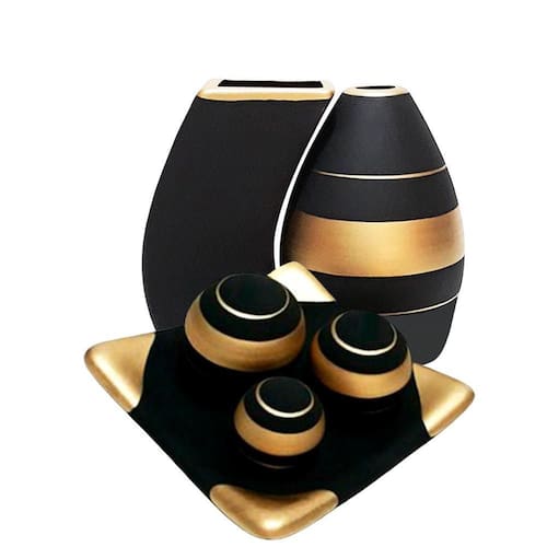 Jogo de vasos par turim e prato 3 em cerâmica fosca - black dark Jogo de vasos prato centro de mesa 3 e par turim em cerâmica fosca premium decor Jogo de vasos par turim e prato centro de mesa 3 premium em cerâmica fosca decorativa de alta qualidade e durabilidade com acabamento diferenciado, inspirador e moderno. O produto em cerâmica é uma belíssima peça atemporal, sendo ótimo para entusiastas e profissionais da decoração, pois garante charme, elegância, modernidade e sofisticação. Repagine e decore a sua casa, cozinha, sala de jantar, sala de estar, aparadores e mesas em gerais, deixando-as com um clima agradável, alegre e descontraído, sendo também uma ótima opção de presente. Dimensões: - centro de mesa 3 : comprimento: 20 cm x largura: 12 cm. - par de vasos turim: altura: 23 cm x largura: 12 cm. Características do produto: - centro de mesa com par turim em cerâmica fosca de alta qualidade e durabilidade - pintura artesanal. - produzido por artesões profissionais seguindo um padrão de qualidade que atenda o gosto dos nossos clientes Cuidados: - recomendamos o uso de pano levemente umedecido para sua limpeza. do produto: - o produto é muito bem acomodado dentro da caixa, e super embalado para evitar quebras, ainda assim possuímos um sistema de e troca. Imagens meramente ilustrativas - produto artesanal, podendo variar de cor e/ou tonalidade Marca: Retrofenna Decor Ean: 7892484212269