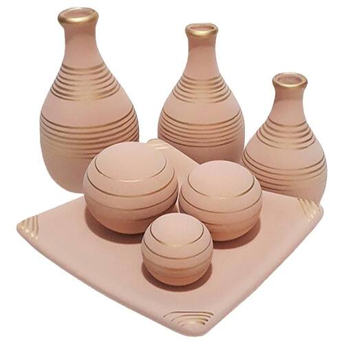 Jogo de vasos trio garrafas e centro de mesa 3 fosca - bege gold jogo de vasos trio garrafas e centro de mesa 3 em cerâmica fosca decor