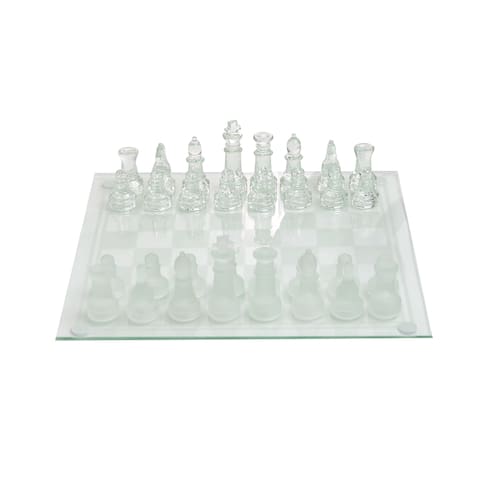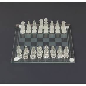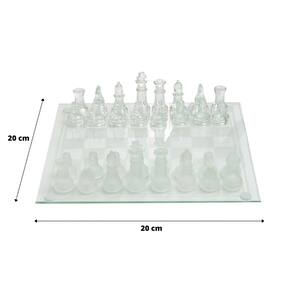 Informações Técnicas: Composição: Vidro. Tamanho do tabuleiro: 20x20cm. Espessura do vidro: 3mm. Altura do tabuleiro: 5mm. Quantidades de peças: 32 unidades sendo 16 foscas e 16 transparentes. Altura da peça maior: Rei 4,5cm. Peso do tabuleiro e peças: 476 gramas.