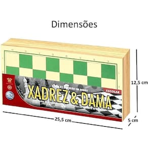 Principais benefícios: - Desenvolvimento cognitivo e estratégico para crianças e adultos - Compacto e leve: fácil transporte e armazenamento (25,5 x 12,5 x 5 cm) - Dupla funcionalidade: xadrez e dama em um único jogo - Peças robustas que garantem durabilidade e conforto nas partidas - Incentiva convivência familiar e socialização saudável