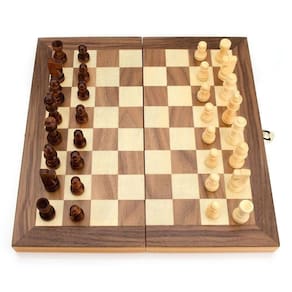 Jogo de Xadrez Dama Gamão Dobrável Tabuleiro em Madeira 30cm
