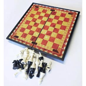 Jogo de xadrez prático e leve, fácil de transportar, material de excelente qualidade Tabuleiro quando fechado se transforma em um prático estojo para guardar todas as peças.