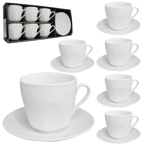 O conjunto é composto por 12 peças, sendo 6 xícaras e 6 pires, perfeitos para o uso diário ou para ocasiões especiais.
