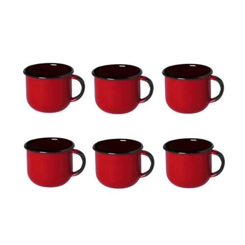 Jogo de Xícara de Cafezinho 06 Peças Esmaltada Vermelho 120 ml Ewel