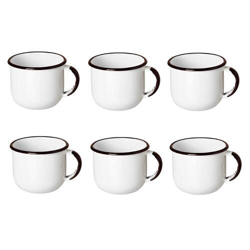 Jogo de Xícara de Chá 06 Peças Esmaltada Branca 240 ml Ewel