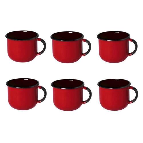 Jogo De Xícara De Chá 06 Peças Esmaltada Vermelho 240 Ml Ewel