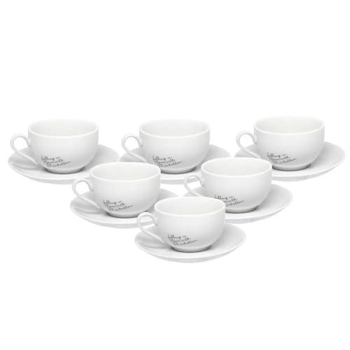 Eleve a experiência do seu chá com o requinte e a sofisticação do nosso conjunto de xícaras de chá em porcelana Manhattan. Com uma capacidade generosa de 160ml cada, estas elegantes xícaras são cuidadosamente fabricadas em porcelana com desenho de abelhinhas escrito be happy, proporcionando um toque chamoso e divertido à sua mesa.O conjunto é composto por seis xícaras e seis pires, oferecendo a você e seus convidados a oportunidade de desfrutar de momentos especiais com estilo. Cada peça é trabalhada com detalhes finos, combinando forma e função para criar uma experiência de chá verdadeiramente memorável. Jogo com 12 Peças (6 Xícaras + 6 Pires)