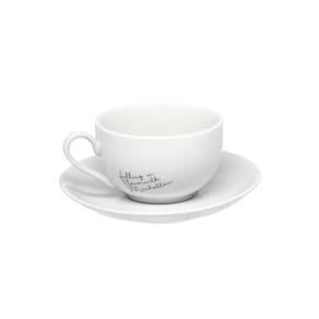 Medidas: Xícara - 5,5x11x5,5cm / Pires - 2x14x14cm (A x C x L) Capacidade para: 160ml Material: Porcelana