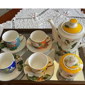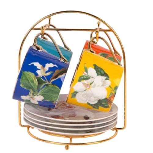 Jogo de Xícaras chá com Suporte New Bone Filete Ouro 4un l'hermitage